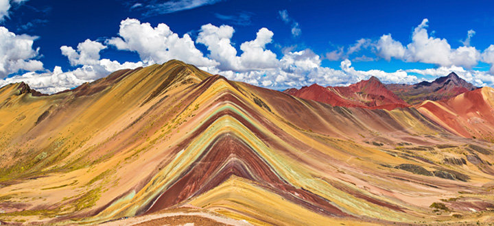 El tour al cerro de los 7 colores inicia con el recojo desde su hotel a las 4.00am., para dirigirnos al sureste de la ciudad del Cusco, por vía asfaltada con un tiempo de 2.00 aprox. hasta llegar al poblado de Pitumarca, a partir de este poblado seguiremos a través de una trocha carrózale por una hora hasta el sector de Quesiuno, (4,327 m.s.n.m) lugar donde iniciaremos nuestra caminata por un sendero rodeado de las mesetas, riachuelos, valles, punas y nevados, llegaremos a la montaña Vinicunca, (5020 m.s.n.m) a partir de este punto la llaman “La Montaña de Colores” pues la variedad de nombres tiene origen en la imaginación de viajeros aventureros, al admirar esta cadena de montañas que irradia indescriptible emoción al momento de visitarla. Este paisaje muestra uno de los accidentes geográficos más hermosos que nuestra naturaleza, por esta y muchas razones fue incluida por “National Geographic” como uno de los 100 lugares que uno debe visitar. Después de relajarnos en este grandioso lugar, tomaremos el camino de retorno a Quesiuno, donde nos estará esperando nuestro bus para trasladarnos a Cusco.